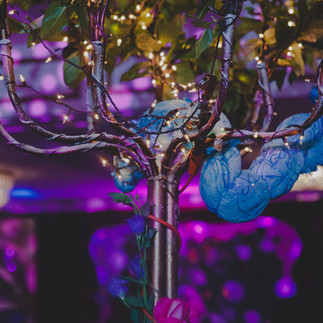 “Curiosity often leads to trouble” but not at Amanda in Wonderland! A wheatgrass garden path with live rabbits bordered a purple carpet lead guests into Amanda’s Wonderland. Skeleton keys with guest’s names granted them access to the next part of the journey. From there, guests entered a room filled with oversized pink mushrooms, flowers, twinkling tavern trees, moss and rich purple furniture. There was Alice in Wonderland details everywhere such as Mad Hatter Hats, the Cheshire Cat hiding in the trees, butterflies, and stained glass. All these harmonious details paired such a fun, lively, innovative image that brings a spectacular event to life.